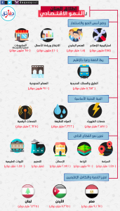 الأردن: تدعم الخطة مشروع ربط البحرين الأحمر والميت، الذي سيمد الأردن وإسرائيل بالمياه النقية، ويقلل تقلص مياه البحر الميت، وتطوير مطارين وتأسيس ثالث، ودعم مشروع خط سكك حديد الأردن، مع إمكانية مده مستقبلا لدول الخليج.