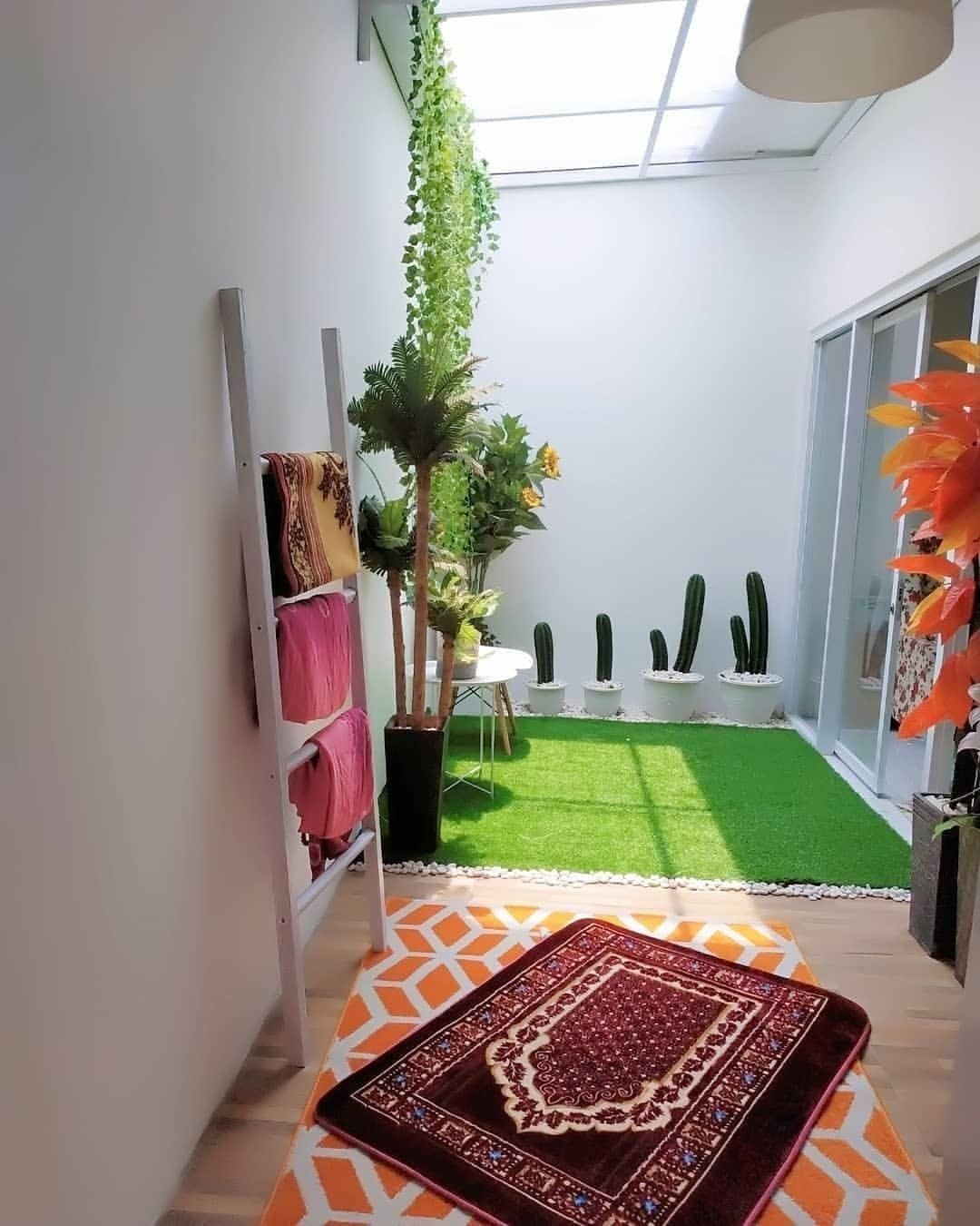 مساحة خضراء للصلاة: لمحبي الطبيعة، يمكن إنشاء مساحة خضراء داخل المنزل تكون مكانًا هادئًا لأداء الصلوات في جو من الطبيعة.