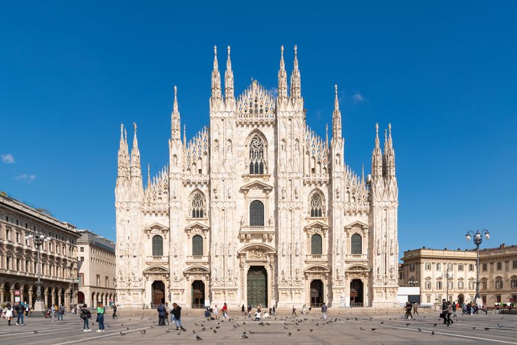 أشهر معالم ميلانو الدينية، وهي ذات أصول قوطية، استغرق بناؤها حوالي ستة قرون بدءاً بعام ١٣٨٠م إلى عام ١٩٦٠م، صممت بشكل فريد، وهي مغطاة بالرخام من نوع يسمى كاندوجليا، تحتوي وجهتها على 135برجًا وتضم 3400تمثالاً.
