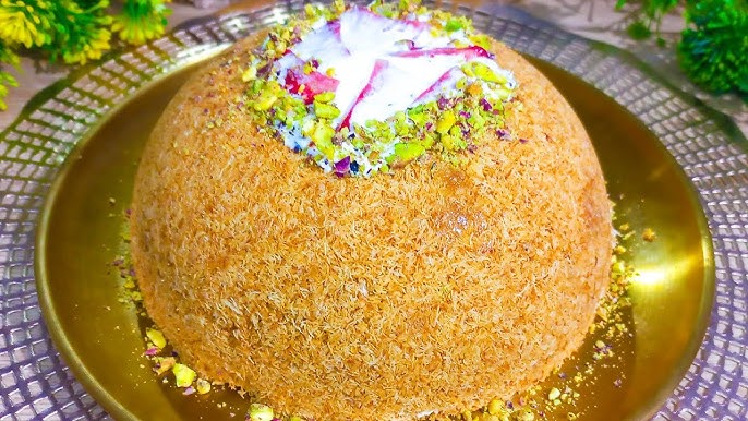 انقلي الكنافة من الصينية المدورة إلى طبق.