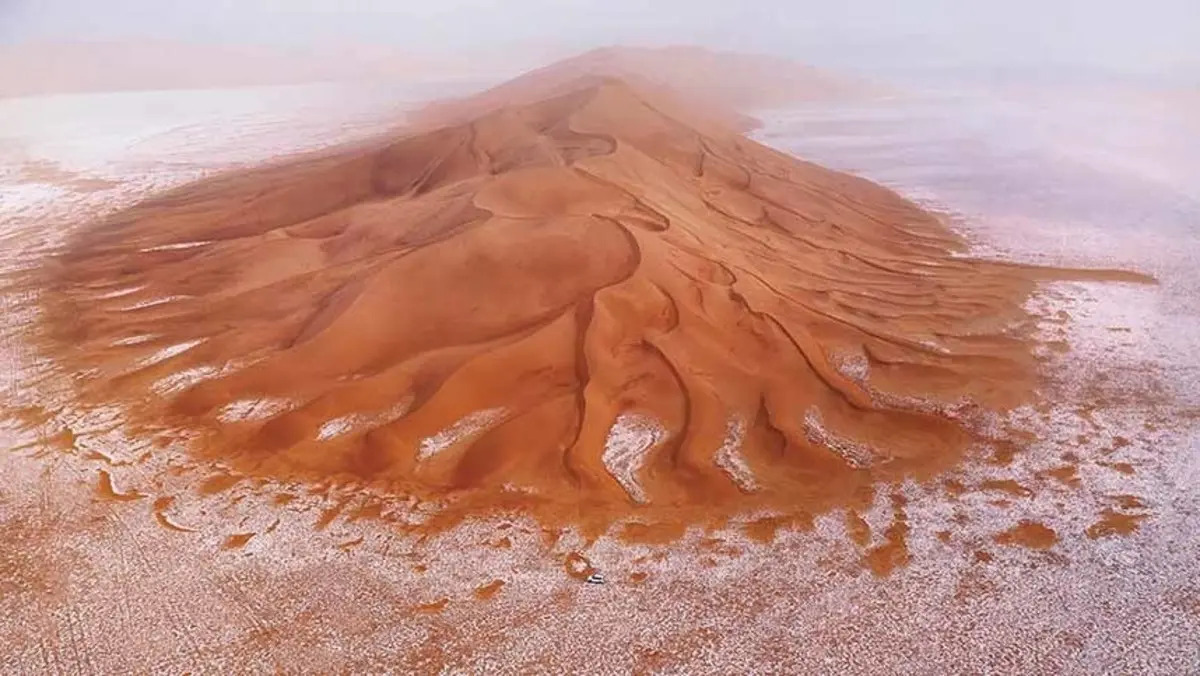 كما تعلو عن سطح البحر بمسافة 6058متر، وبسبب شكلها المختلف ومساحتها الكبيرة لفتت أنظار العديد من الرحالة الذين مروا خلال صحراء الربع الخالي أو عبروها، وقد كان السير ويلفريد ثيسيجر البريطاني أول رحالة تعرف على هذه المنطقة خلال رحلته سلطنة عمان في نهاية أربعينيات القرن الماضي.