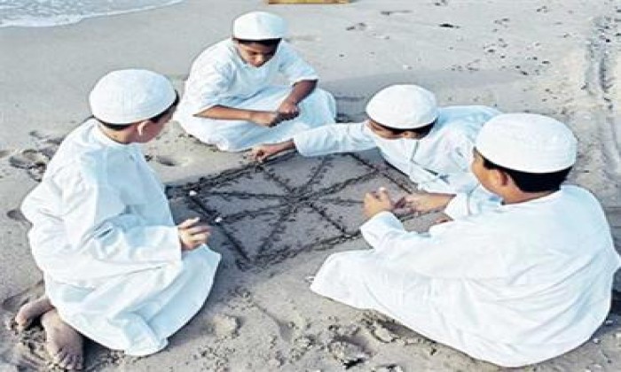 يقوم كل لاعب بجمع خمسة حصوات صغيرة من الصوان المستدير.