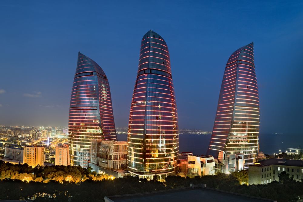 توجد ناطحات السحاب في Flame Towers وهي أطول ناطحات سحاب في مدينة باكو.