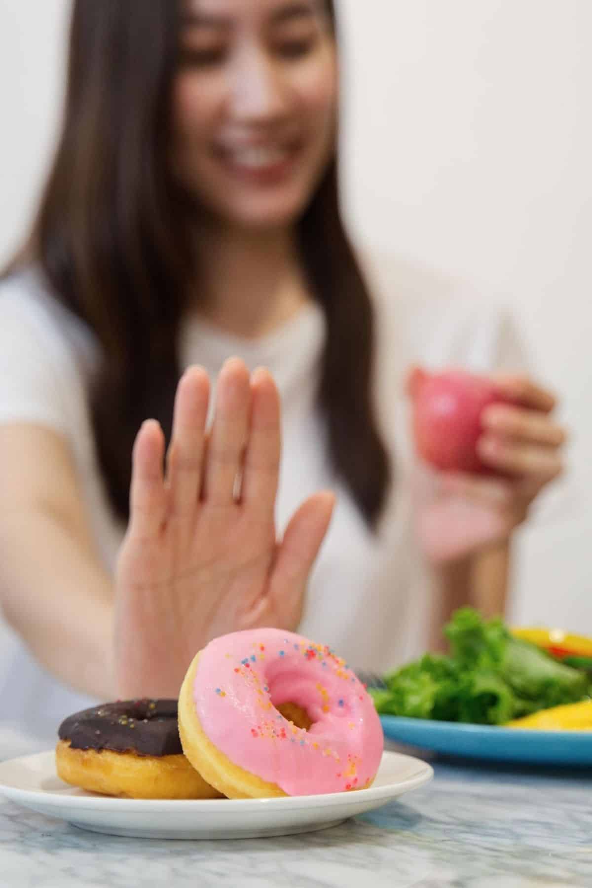 كما أنه عليك قبل تناول الحلويات أو بدائلها القيام بتناول كميات كبيرة من الماء لتشعرك بالشبع؛ مما يؤدي إلى عدم تناول كميات كبيرة من الحلويات.