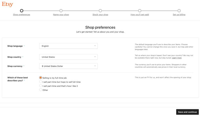 بالنسبة للخيارات الأخرى، يمكنك تركها كما هي لأنها غير ضرورية في هذه المرحلة. وبعد اتمام التسجيل على موقع Etsy ونظرًا لكونك جديد على المنصة فمن الجيد أن تقوم بالإطلاع على ميزاتها وطريقة تنظيم المنتجات هناك والفئات الرئيسية وما إلى ذلك.