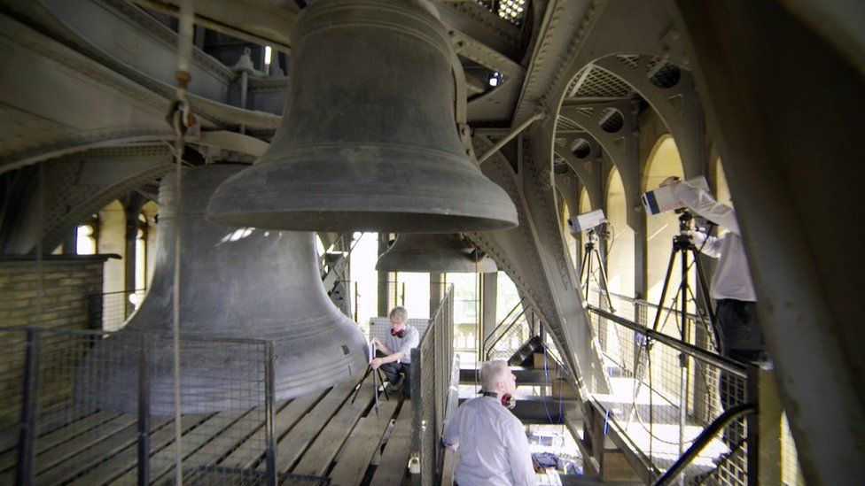 كما تم نقل الجرس إلى الساعة أول مرة باستخدام عربة يقوم بجرها 16 حصان. يتوقف الجرس عدة مرات لتكرار أعمال الصيانة به.