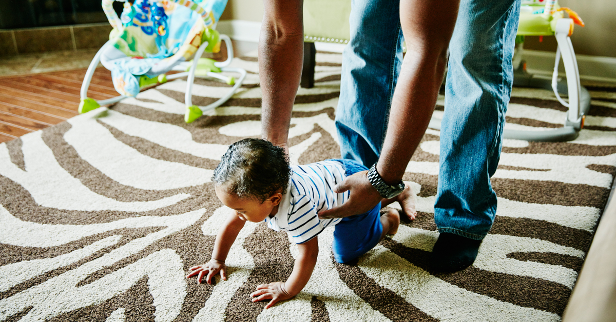 من العلامات التي تعد دليلًا كبيرًا على استطاعة الطفل للحبو هى وقوف الطفل وتمسكه بالأثاث، وسحب جسده ليصل إلى الأشياء.
