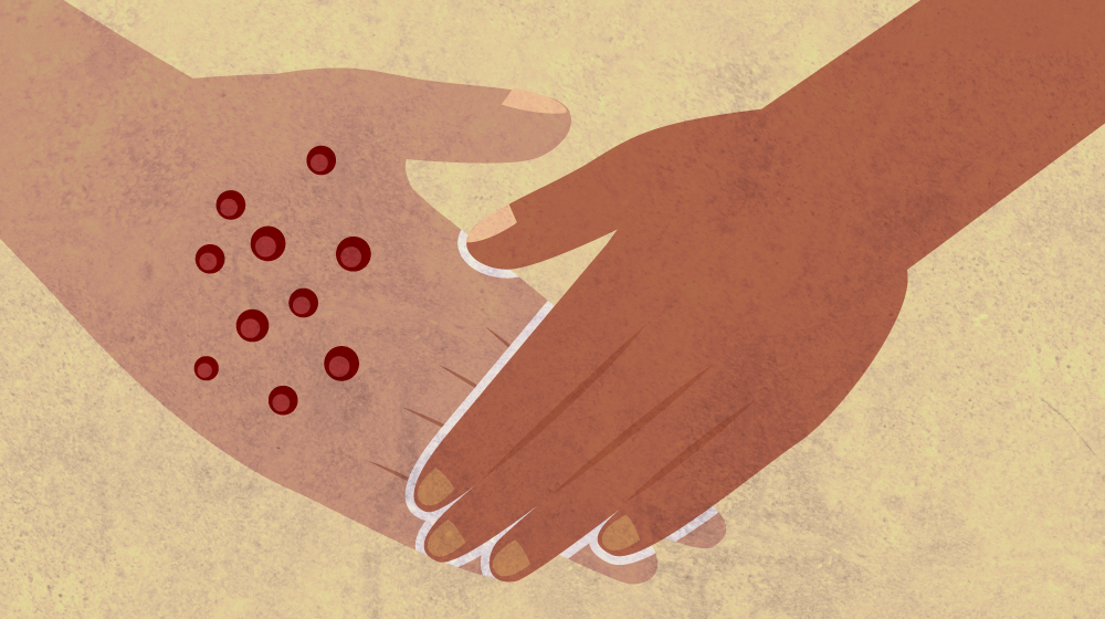 تحدث العدوى عند ملامسة جسد شخص مصاب بجدري القرود.