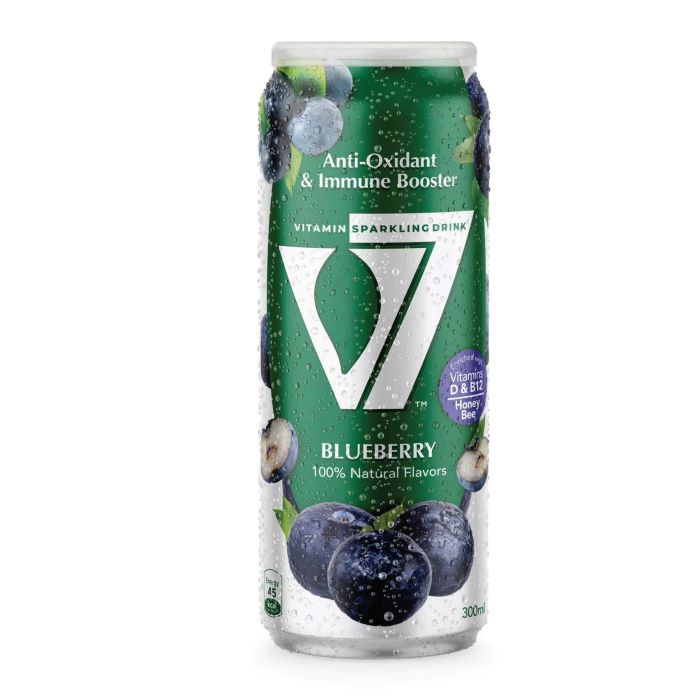من بين نكهات V7 المتوفرة في الأسواق: التوت الأزرق، والرمان، والنعناع، واليوسفي، والأناناس، والليمون، وتتراوح أسعار زجاجات V7، التي تحتوي على 300 مل من المشروب، بين 11 و14 جنيهًا مصريًا، حسب النكهة.