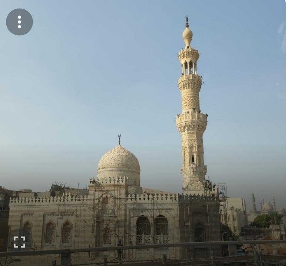 من الناحية الغربية لمسجد السيدة عائشة بمصر يابين يتوسطهما المأذنة.