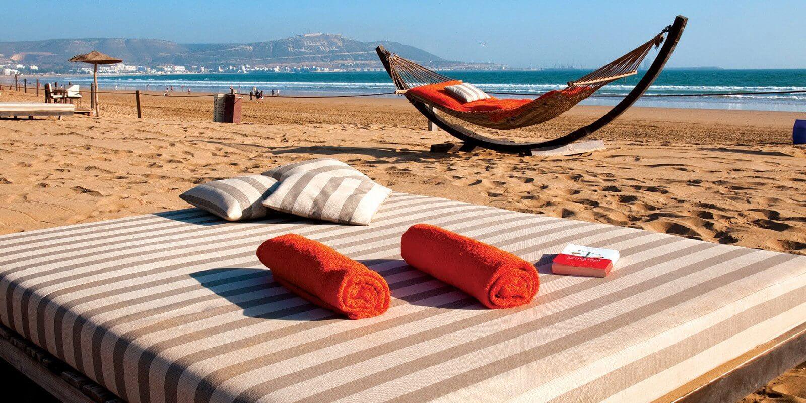 يوفر الشاطئ مجموعة من الأنشطة المتنوعة؛ بدايةً من الاسترخاء على مقاعد التشمس والاستمتاع بشمس أكادير الدافئة، وصولًا لأنشطة ركوب الأمواج والتجديف، فهو يضمن لك رحلة سياحية فريدة ومميزة ومليئة بالمغامرات والأنشطة الرائعة.
