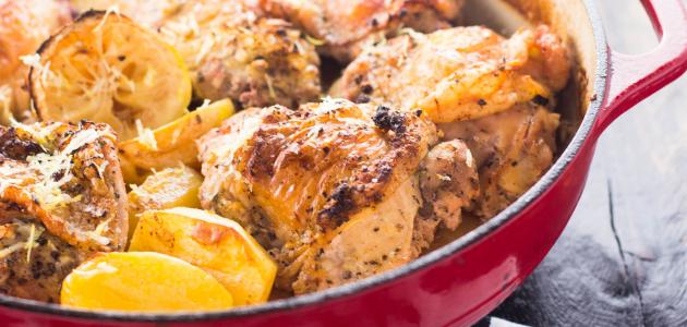 تجهز بوضع البطاطس في الصينية بطريقة ومكونات محددة، وتوضع الفراخ على الوجه، لتحصلي في النهاية على دجاج مشوي لذيذ.