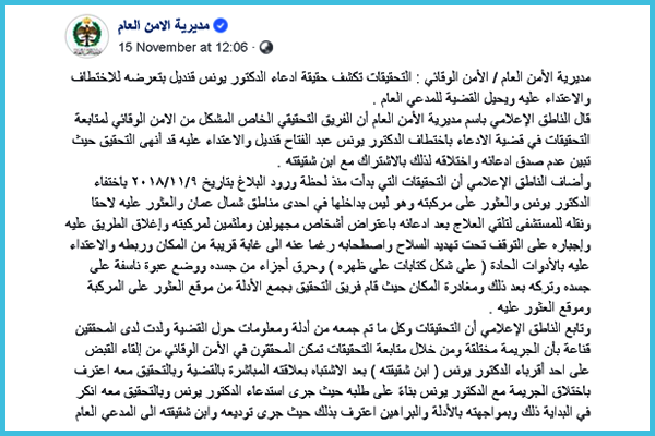 الخميس الماضي، أصدرت مديرية الأمن العام بيانًا قالت فيه إن الواقعة مختلقة.
