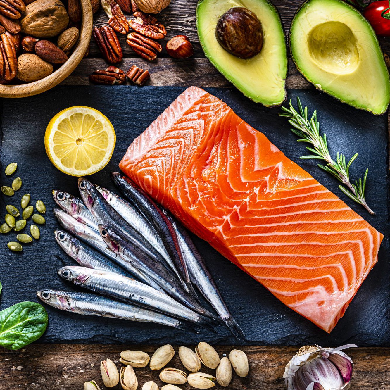 وتتوفر غالبًا بنسب أكبر في أنواع الأسماك الدهنية، وبعض المصادر الآخرى النباتية، مثل: بذور الكتان، والمكسرات، وبذور الشيا.