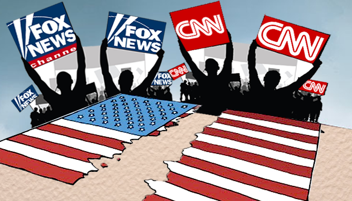 الولايات المتحدة ليست منقسمة فقط إلى أغنياء وفقراء، بل إلى أحمر وأزرق. جمهوري وديمقراط. محافظ وليبرالي، شعب فوكس نيوز وشعب سي إن إن.