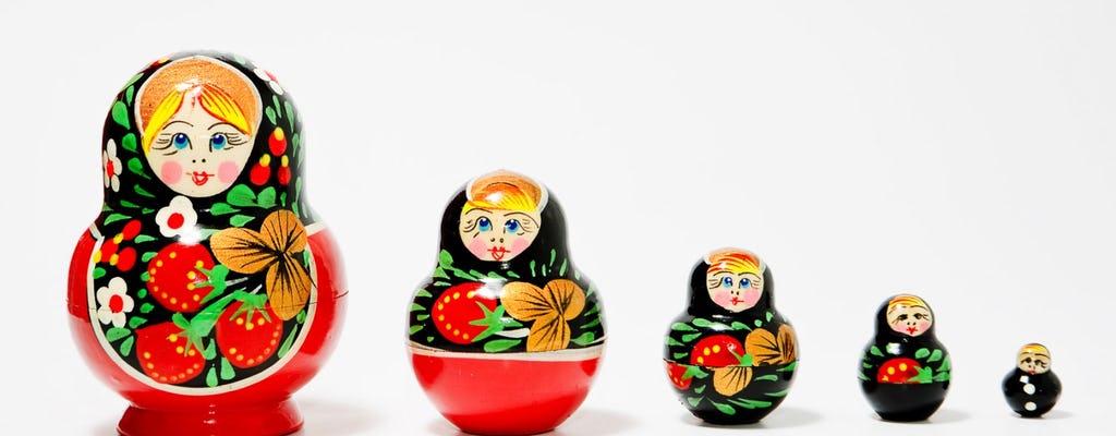 في دمى ماتريوشكا ، توجد مجموعة من الدمى الخشبية موضوعة داخل بعضها بترتيب تنازلي.