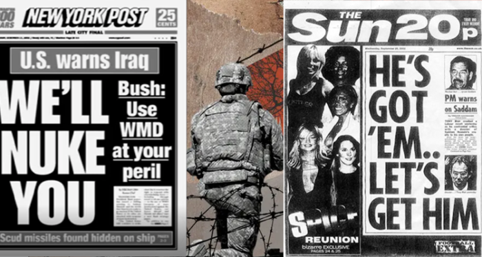 استمر مردوخ في دعم بلير في الفترة التي سبقت حرب العراق. وكانت الصن في بريطانيا تدعم جهود الحكومة البريطانية نحو الحرب، بينما صحيفة نيويورك بوست الأمريكية التي يملكها مردوخ تؤدي الوظيفة ذاتها عبر الأطلنطي.. بل إن موقف الصن لم يتغير من حرب العراق أبدًا حتى بعد انقطاع دعمها لحزب العمال تماما بعد 12 عاما من التأييد.. بينما انتقل بلير إلى صف البقاء في الاتحاد الأوروبي.