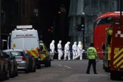 صدم ثلاثة إرهابين تابعين لداعش المارة على جسر لندن، ثم طعنوا الناس في الحانات القريبة، مما أسفر عن مقتل ثمانية وجرح 48 على الأقل قبل أن تطلق الشرطة النار على القتلى الثلاثة