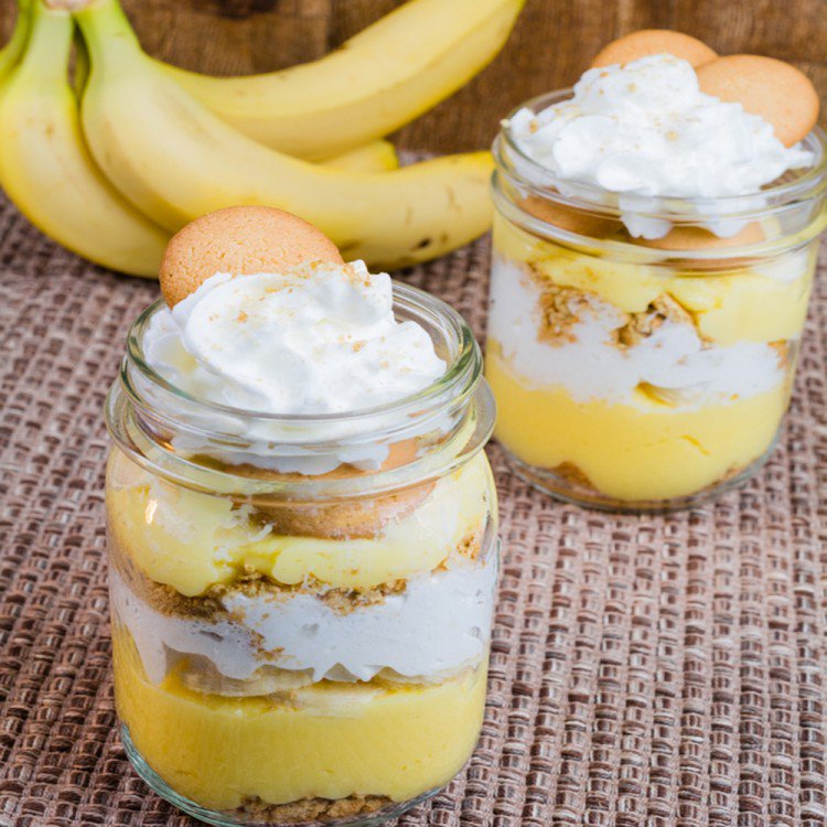 احضري أكواب التقديم وضعي بها طبقة البسكويت، ثم طبقة من الكراميل، ثم طبقة من الكريمة المخفوقة، وفي الأعلى ضعي الموز بعض تقطيعه إلى شرائح سميكة.