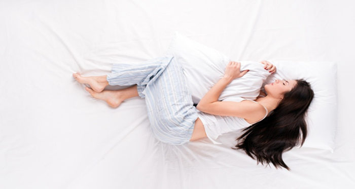 جرِّب وضعًا جانبيًا قليلًا بوضع وسادة بين معدتك والفراش.