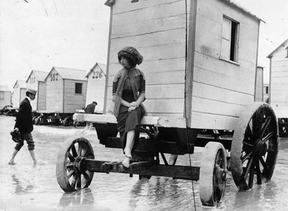 كانت السباحات تبذلن جهودًا غير عادية لإخفاء أنفسهن على الشاطئ؛ إذ كن مضطرات لاستخدام أداة غريبة من العصر الفيكتوري تسمى آلة الاستحمام، عبارة عن كوخ خشبي على عجلات، تدخله المرأة بكامل ملابسها، لترتدي في الداخل ملابس السباحة الضخمة، ثم تجر الخيول أو البشر العربة إلى البحر، لتنزل المرأة للسباحة دون أن يلاحظها أحد.
