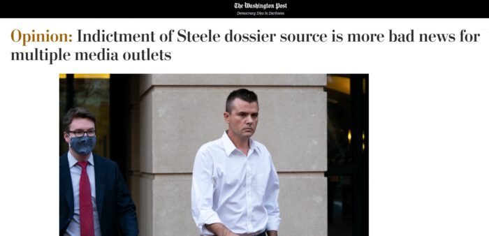 واشنطن بوست، بشعارها الشهير "الديمقراطية تموت في الظلام"، قالت إن لائحة اتهام دورهام "ألقت شكوكًا جديدة بشأن بعض التغطيات الإخبارية حول الملف"، بما في ذلك تقاريرها الخاصة.