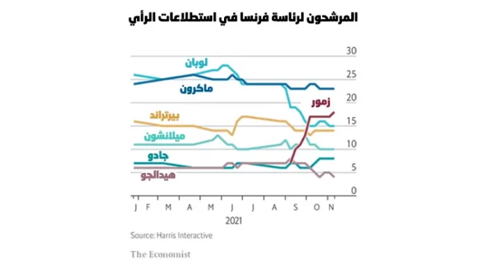 على الرغم من أن الاستطلاعات تظهر أن جاذبية زمور تتجاوز اليمين السياسي، إلا أنه يشكل تحديًا خاصًا للوبان، التي تتراجع في استطلاعات الرأي.