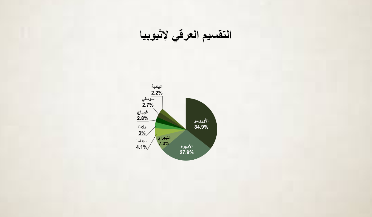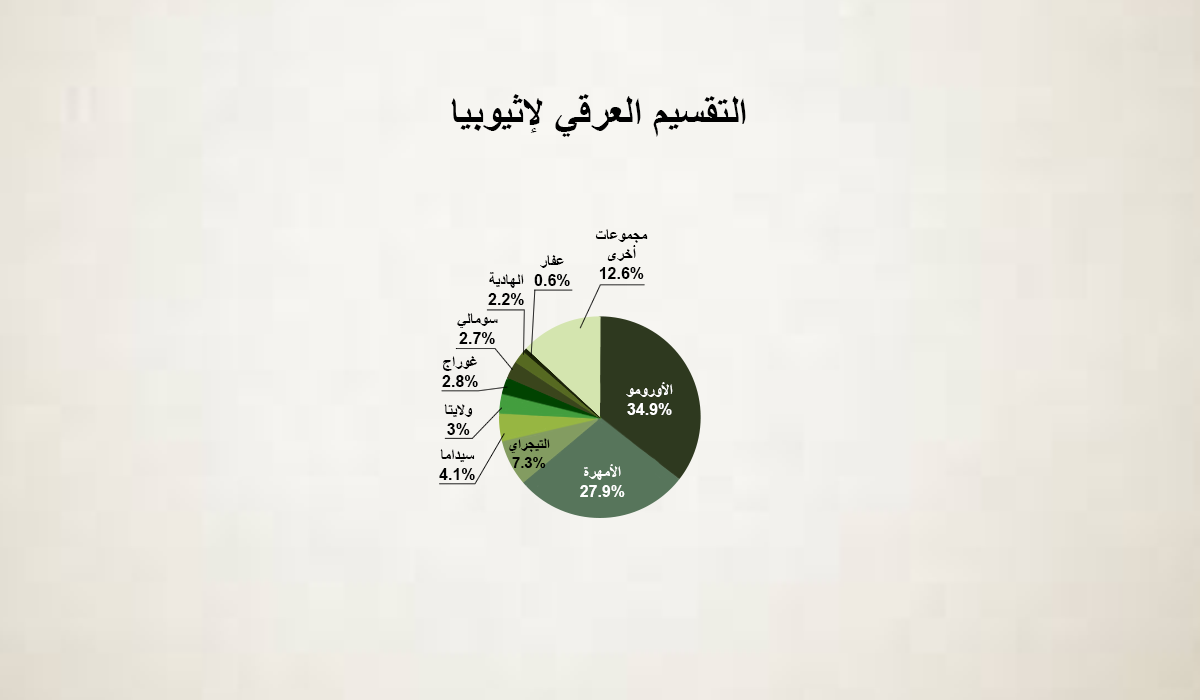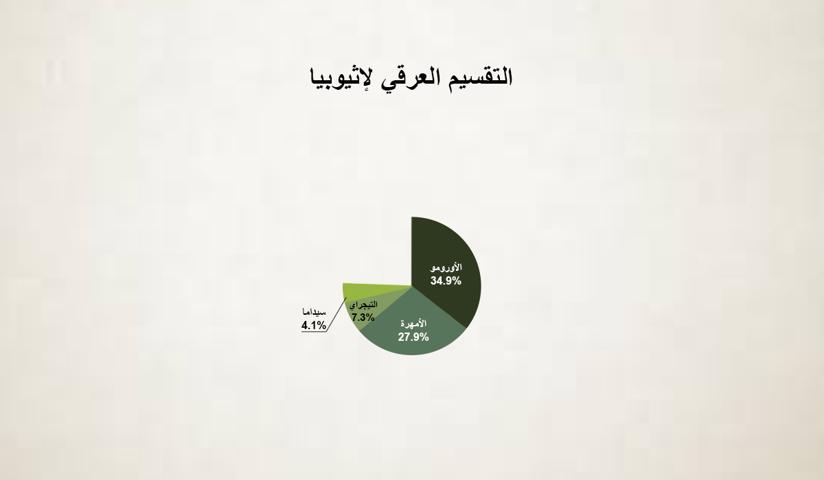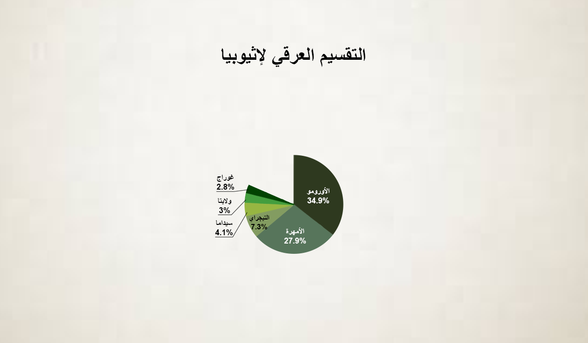 التقسيم العرقي في إثيوبيا، حسب موقع CIA ، يظهر في الإنفوجرافيك التفاعلي التالي. ستظهر المجموعات العرقية المختلفة بنسبها مع السكرول داون