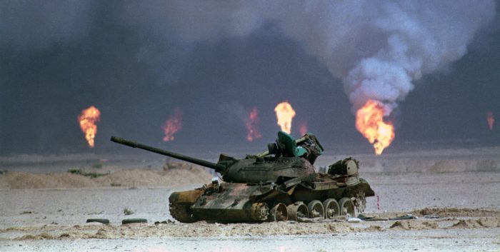 في 2 أغسطس 1990، غزا العراق الكويت الغنية بالنفط والضعيفة عسكريًا، وعلى الرغم من قعقعة السيوف التي استمرت عدة أشهر في العراق وتكثيفها، كانت الكويت غير مستعدة على الإطلاق، وسقطت خلال يومين.