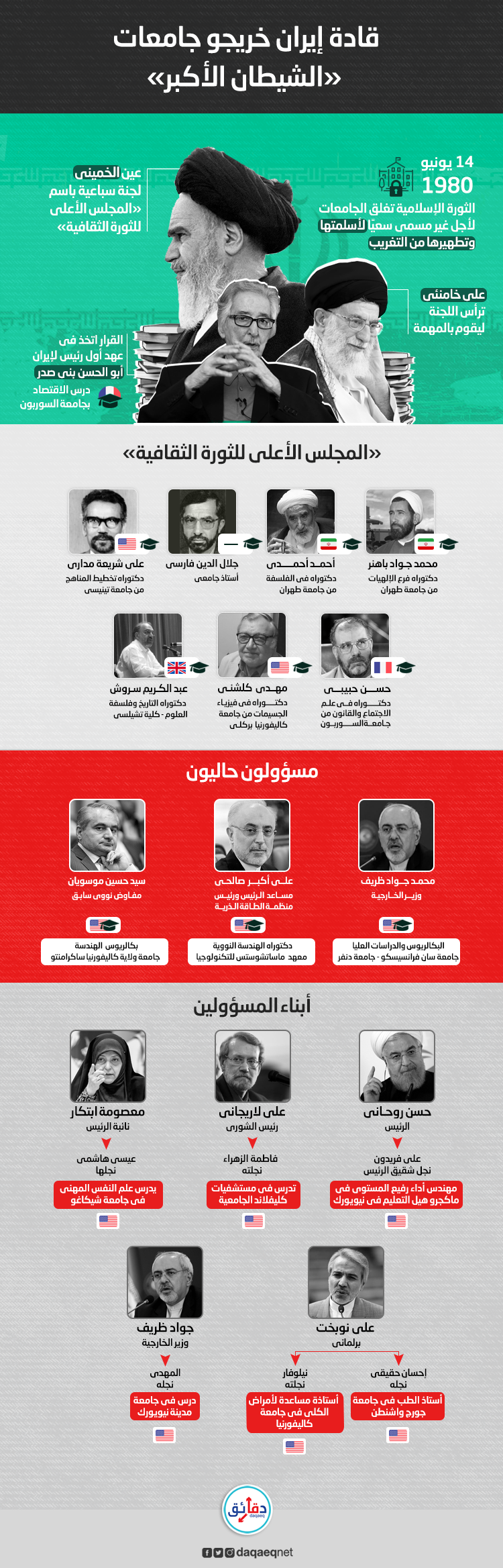 في الإنفوجرافيك التالي، نستعرض مسيرة قادة "الثورة الثقافية ضد الشيطان الأكبر" مع جامعات "الشيطان الأكبر".
