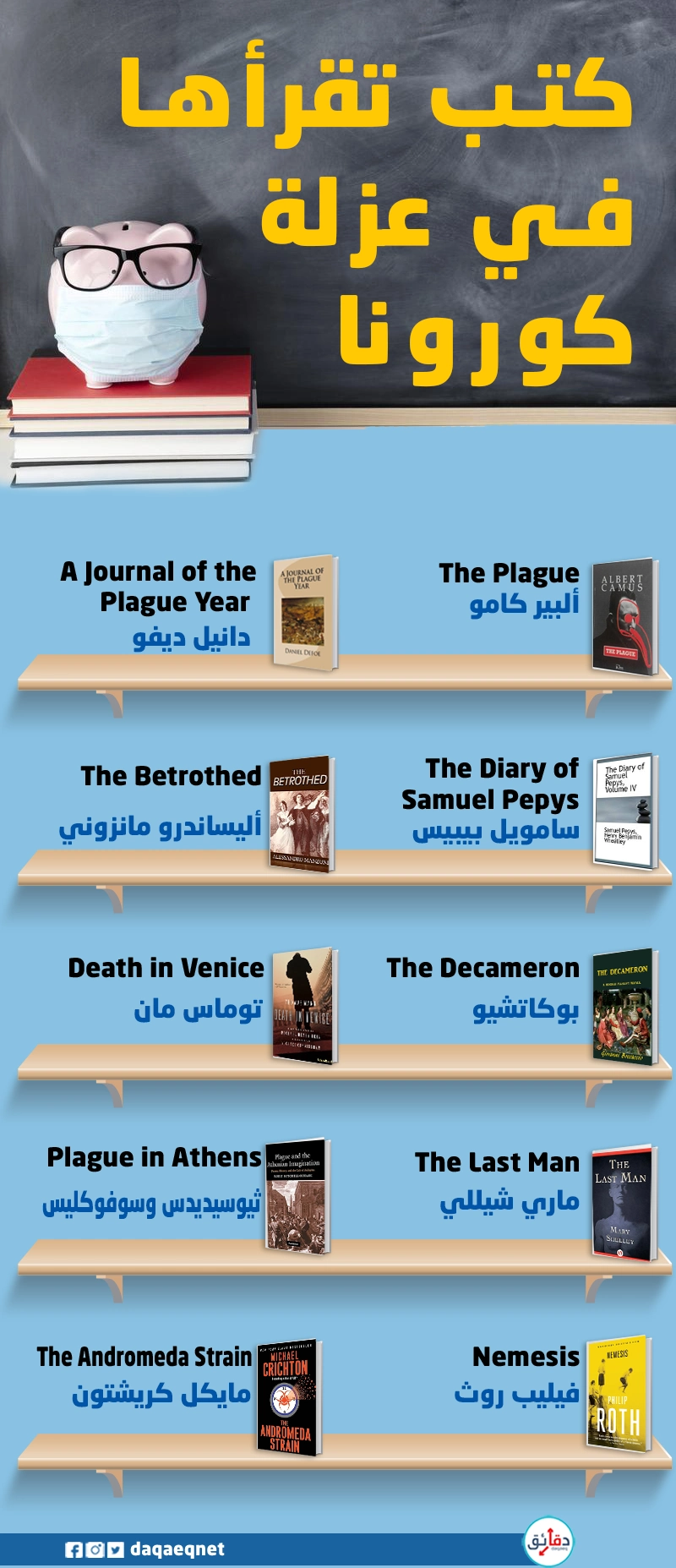 نقدم لك ترشيحات كتب يمكنك قرائها في العزلة الاجتماعية، بعضها قصص حقيقية وأخرى خيالية إنفوجرافيك في دقائق