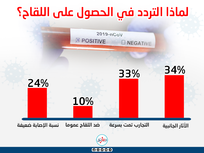 أكبر أسباب التردد كانت المخاوف من الأثار الجانبية المترتبة على اللقاح، وسط مخاوف من أن الجهات المسؤولة سرعت التجارب أكثر من اللازم دون التأكد الكامل من عواقبها.