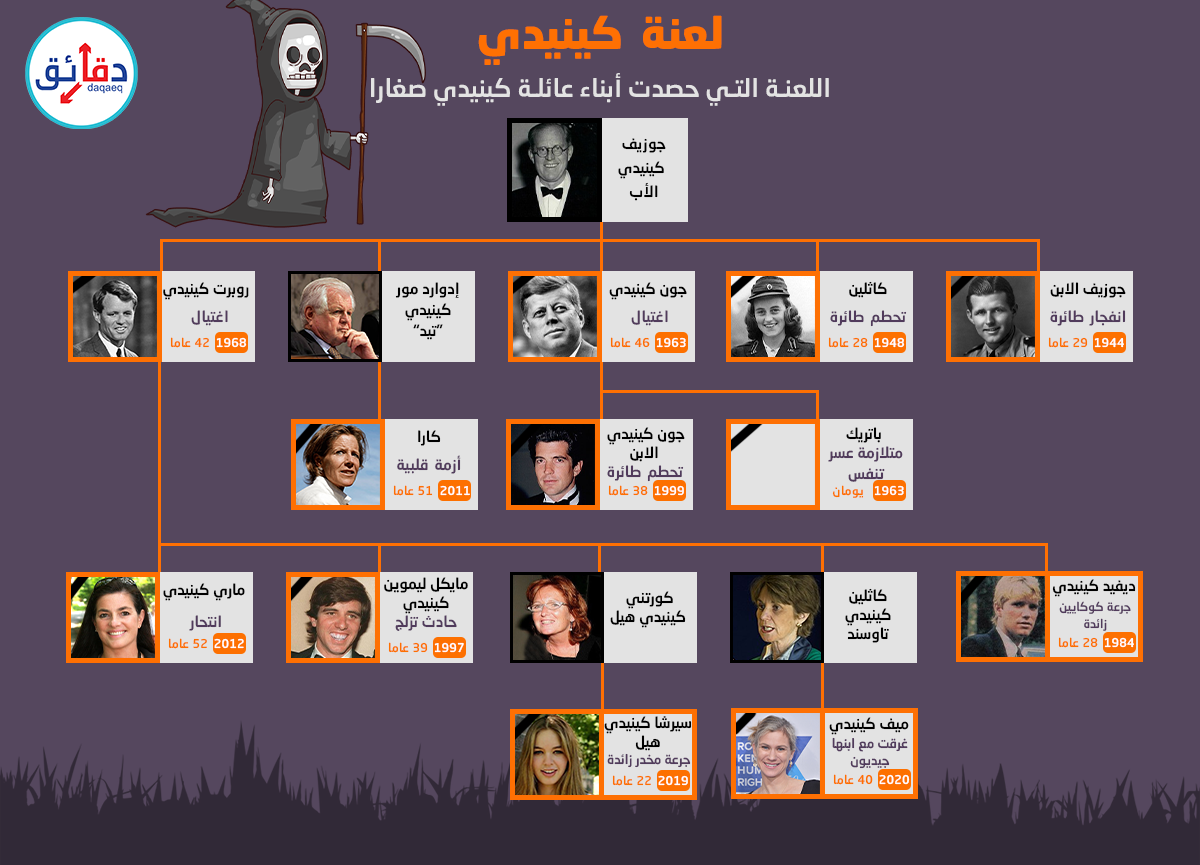لعنة كينيدي حصدت في جيل واحد حياة جون كينيدي وأخيه الأصغر روبرت وقبلهما كاثلين، وجوزيف الذي كان يفترض أن يكون هو النجم السياسي في العائلة وأن يترشح للرئاسة قبل أن تنفجر طائرته في الحرب العالمية.